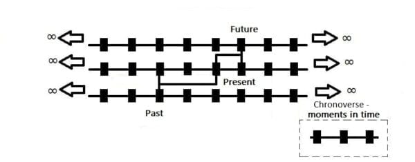 From my viewpoint, the Chronoverse can be understood as encompassing not just numerous parallel realities but the entirety of past, present, and future. In this framework, traveling across parallel real identical Universes can essentially be viewed as a form of time travel—venturing into what might be perceived as present, past or future segments of existence. Keep in mind that in an infinite Universe structures will eventually repeat endlessly, resulting in identical cosmic webs which are being reflected in the micro levels of reality too, including planets, solar systems, galaxies and living organism, some intelligent ones also, with even similar consciousnesses. These realities could exist in the past, present or future, depending on when they sprang into existence (before, after or at the same moment), compared to a given Universe, cosmic structure or other micro and macro level entities „unfolding” within them.