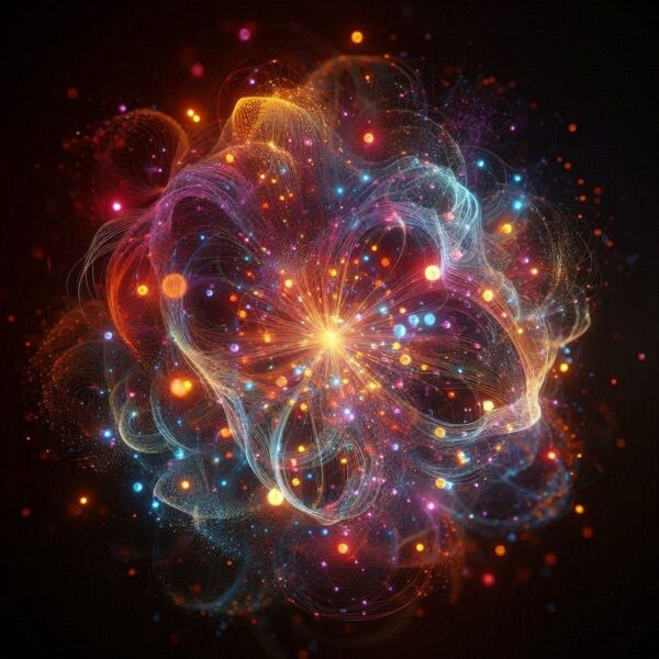 Such ideas echo concepts from quantum field theory, where particles are viewed as excitations of underlying fields, and their interactions lead to the rich tapestry of matter and energy we observe. It’s a fascinating way to visualize the universe as a symphony of pulsating energy waves, continuously creating and transforming the fabric of reality.